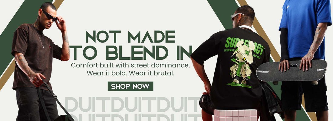 DUIT is an Indian streetwear brand delivering bold, graphic-driven apparel for men and women. Our designs are inspired by urban culture, individuality, and everyday hustle.
